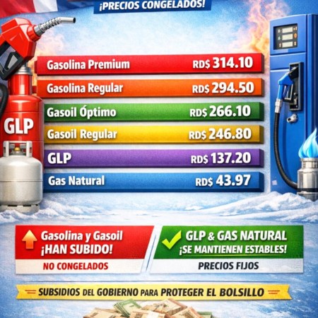 El Gobierno Dominicano hoy congela todos los combustibles con subsidio de RD$1,153.8 millones
