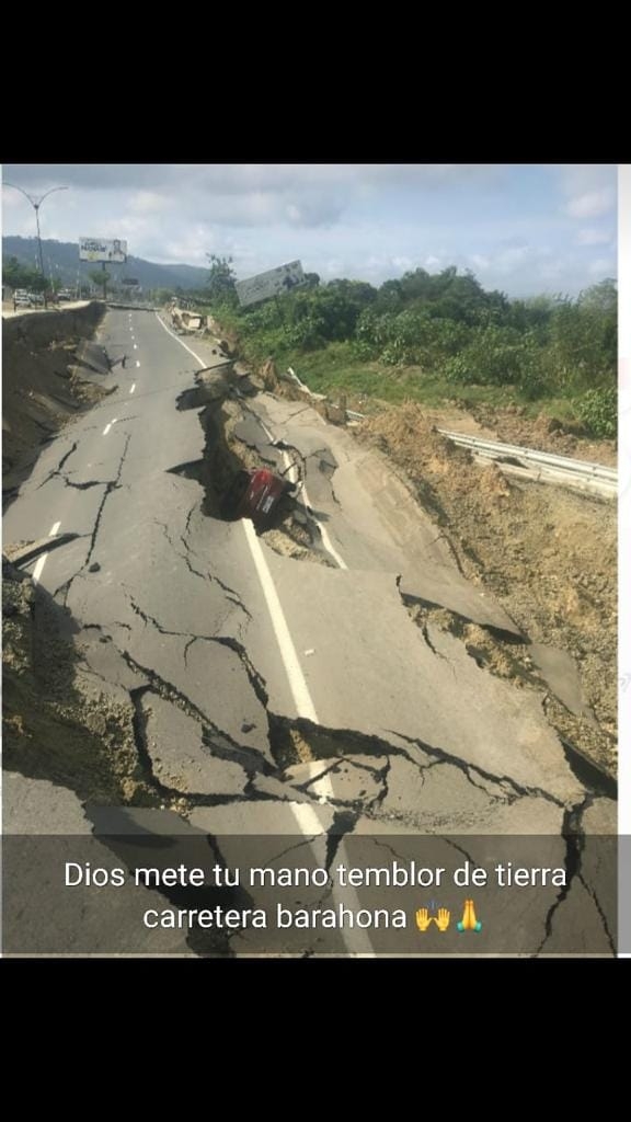 Una de la carretera de Barahona quedó así la carretera Sánchez que baja desde Barahona a perdenales el sismo se sintió en país completo el sur del país República Dominicana esto ocurrió hoy 10:30 am de magnitud 5.4