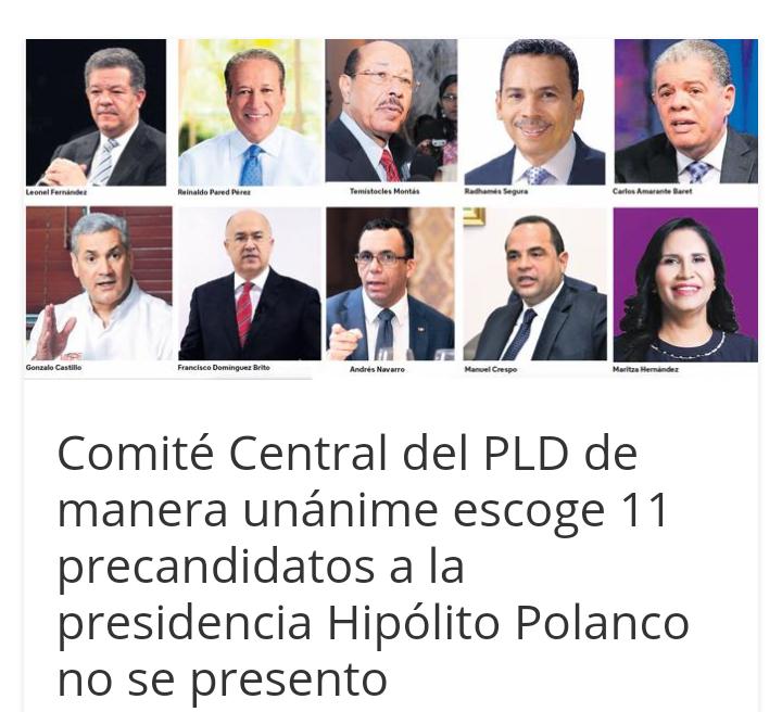 OFICIAL – El Comité Central del PLD acaba de aprobar 11 precandidatos a la Presidencia de la República 2020.