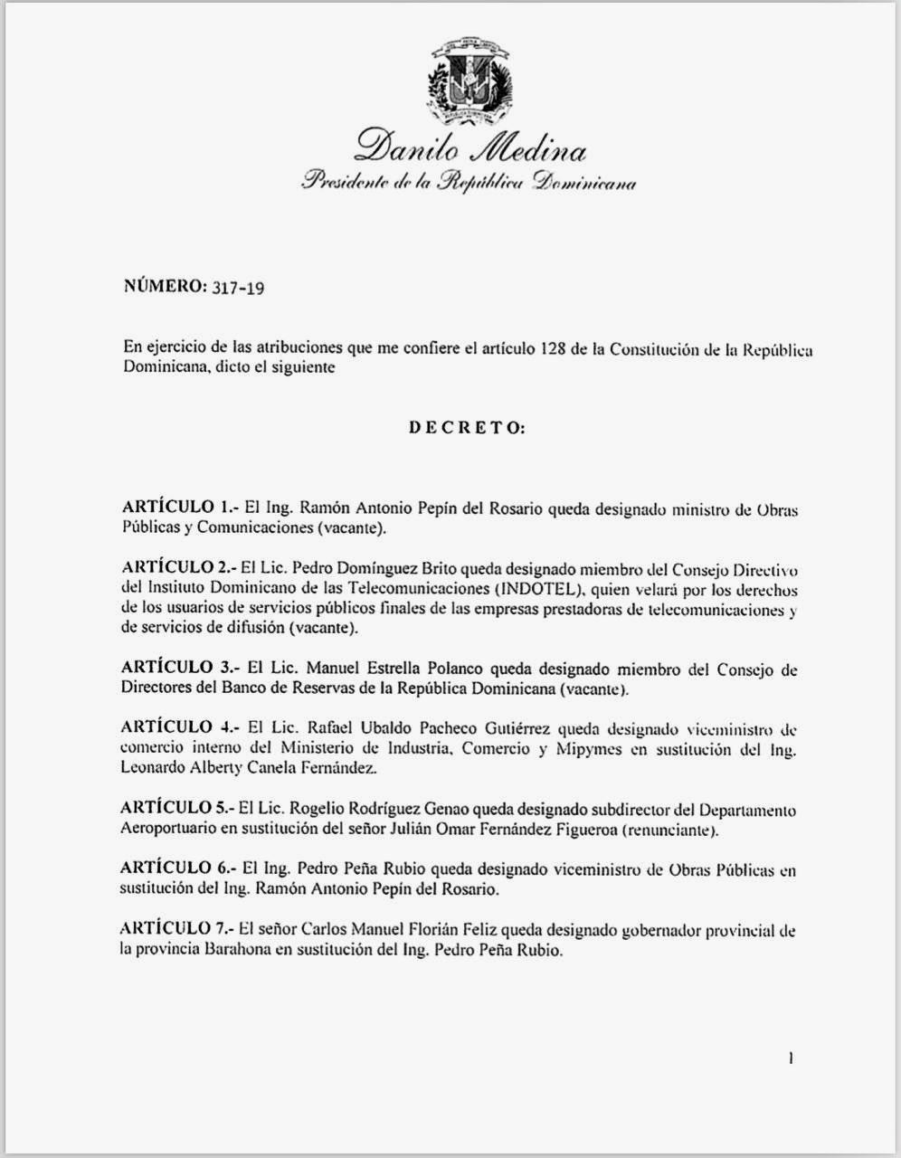 República Dominicana (Santo Domingo) El Presidente Lic: Danilo Medina hace algunos cambio en diferente instituciones y ministerio la você entre pasillo dicen que seguirá algunos más.