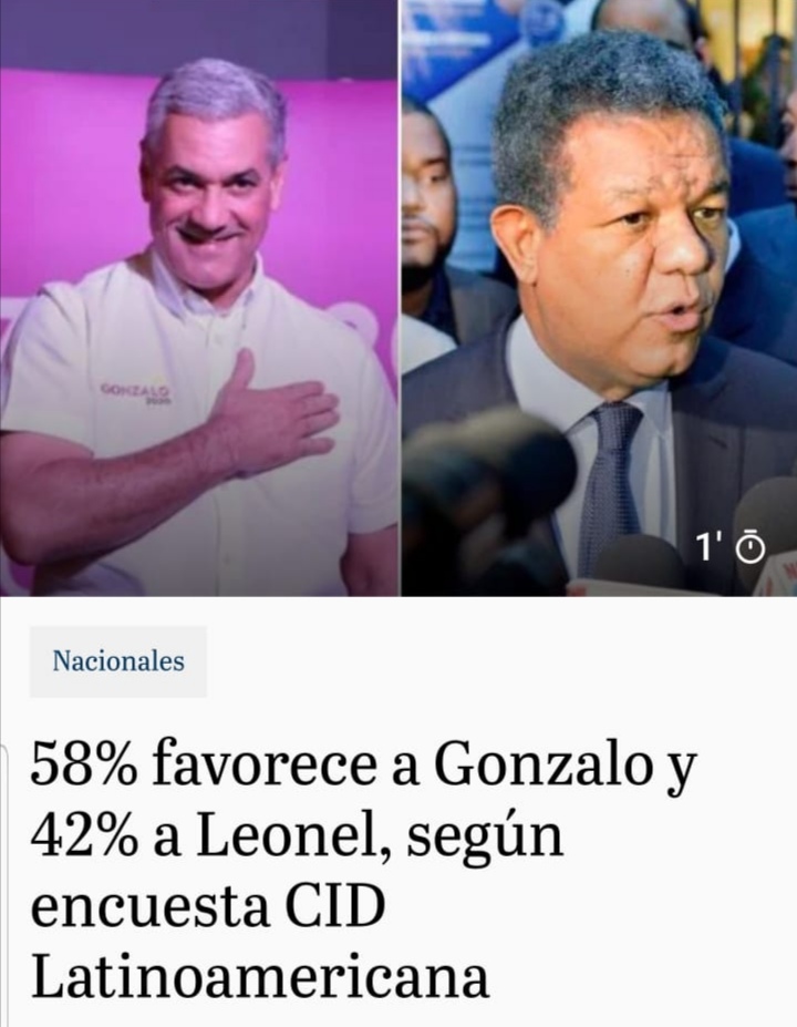 República Dominicana (Santo Domingo) .– Un 58 por ciento favorece al aspirante presidencial Gonzalo Castillo frente a un 42 por ciento del precandidato presidencial Leonel Fernández para las primarias del Partido de la Liberación Dominicana (PLD), según los resultados la encuesta CID Latinoamericana.