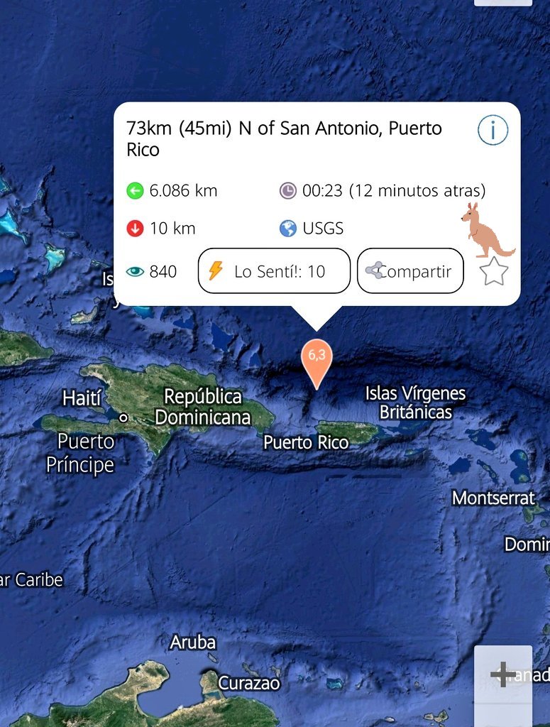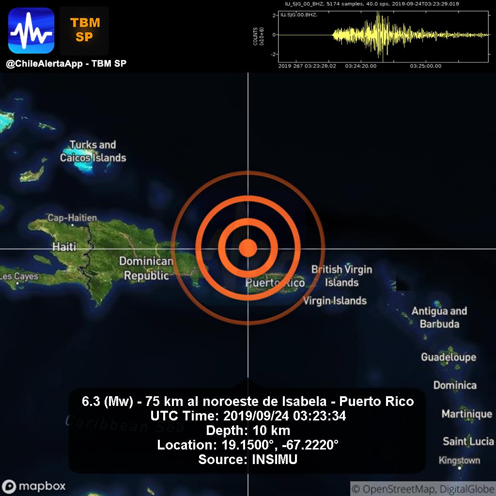 Hasta el momento, El Fuerte #Temblor tuvo una magnitud de 6.3grados al Noroeste de #PuertoRico. ESTE EVENTO TELÚRICO, no es capaz de generar un Tsunami.