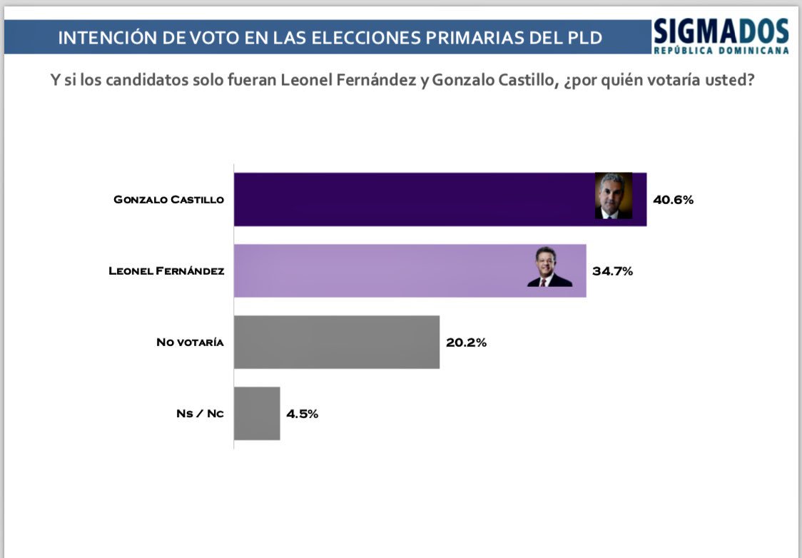 República Dominicana (Santo Domingo) SIGMADOS en una encuesta realizada Gonzalo Castillo aventaja con 6 punto por exima y subiendo una tendencia