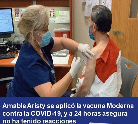 República Dominicana- (Santo Domingo)- El Exsenador de la provincia La Altagracia, Amable Aristy Castro, Informo a CDN-Canal 37 Que se aplico la vacuna Moderna contra La COVID-19 el Martes Pasado el mediodía y que a 24 horas de su aplicación no ha sentido ninguna reacción.