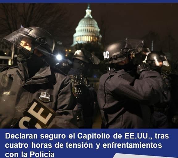 Estados Unidos- (EE.UU)- El capencuentraitolio, se asegurado, según declaraciones de este miércoles un funcionario del congreso norteamericano, fue de 4 hora de tensión por ingreso de simpatizan del presidente Donald Trump, Que Buscan impedir la certificación de la Victoria Jose Biden en las elecciones del 3 noviembre.