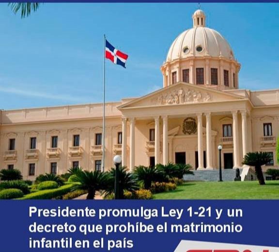 República Dominicana- (Santo Domingo)- El Excelentísimo Presidente Luis Abinader Promulgó la tardes de este miércoles la Ley 1-21 y emitió el decreto 1-21 que eliminan el matrimonio infantil en República Dominicana.