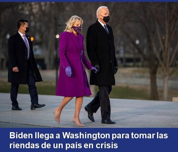 Estados Unidos -(washington)- El presidente electo de Estado Unidos, Joe Biden, llegó el marte a washington para tomar hoy miércoles las rienda de un país abrumado por una convergencia de crisis derivadas de la pandemia y las divisiones política, que confía en afrontar con un rotundo llamado a la unidad.
