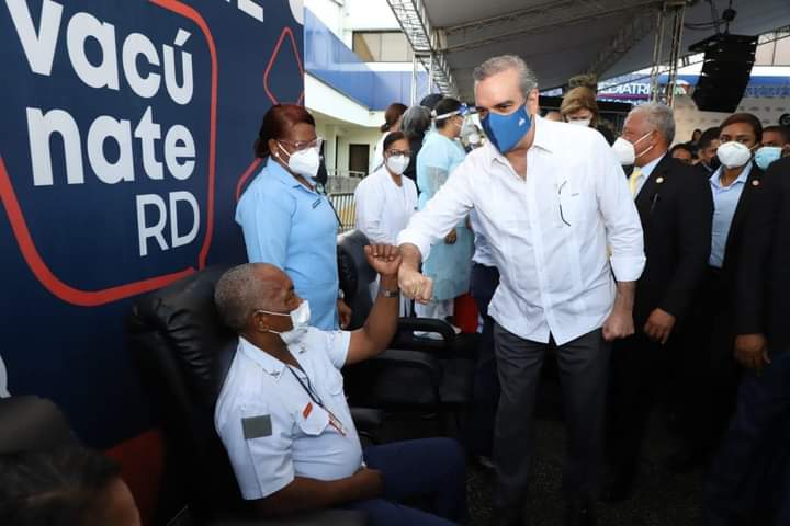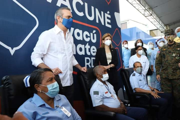 República Dominicana -(Santo Domingo)- El Presidente Luis Abinader y la Vic Presidents Raquel Peña hoy marte inicia el proceso del Plan Nacional de Vacunación contra el covid-19 en hospital Ramón de Lara.