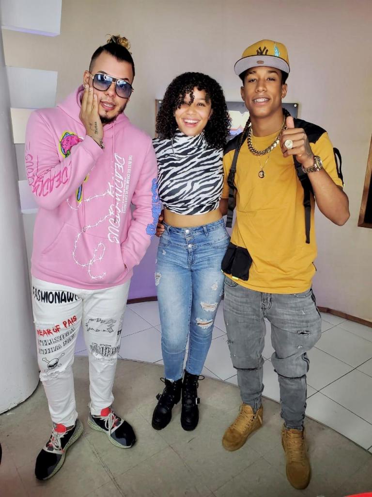 La popular artista Chelsy junto al Peluche Radio y el destacado urbano Nino Freestyle.