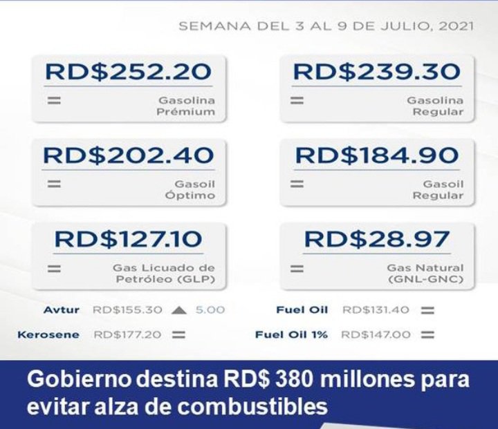 Para lo cual deberá asumir un sacrificio económico de 380 millones de pesos de no haber intervenido el mercado, el gas licuado de petroleo habría aumentado más 18 pesos por galón la gasolina premium se habría disparado en 15 pesos, y la Gasolina Regular más de 17.