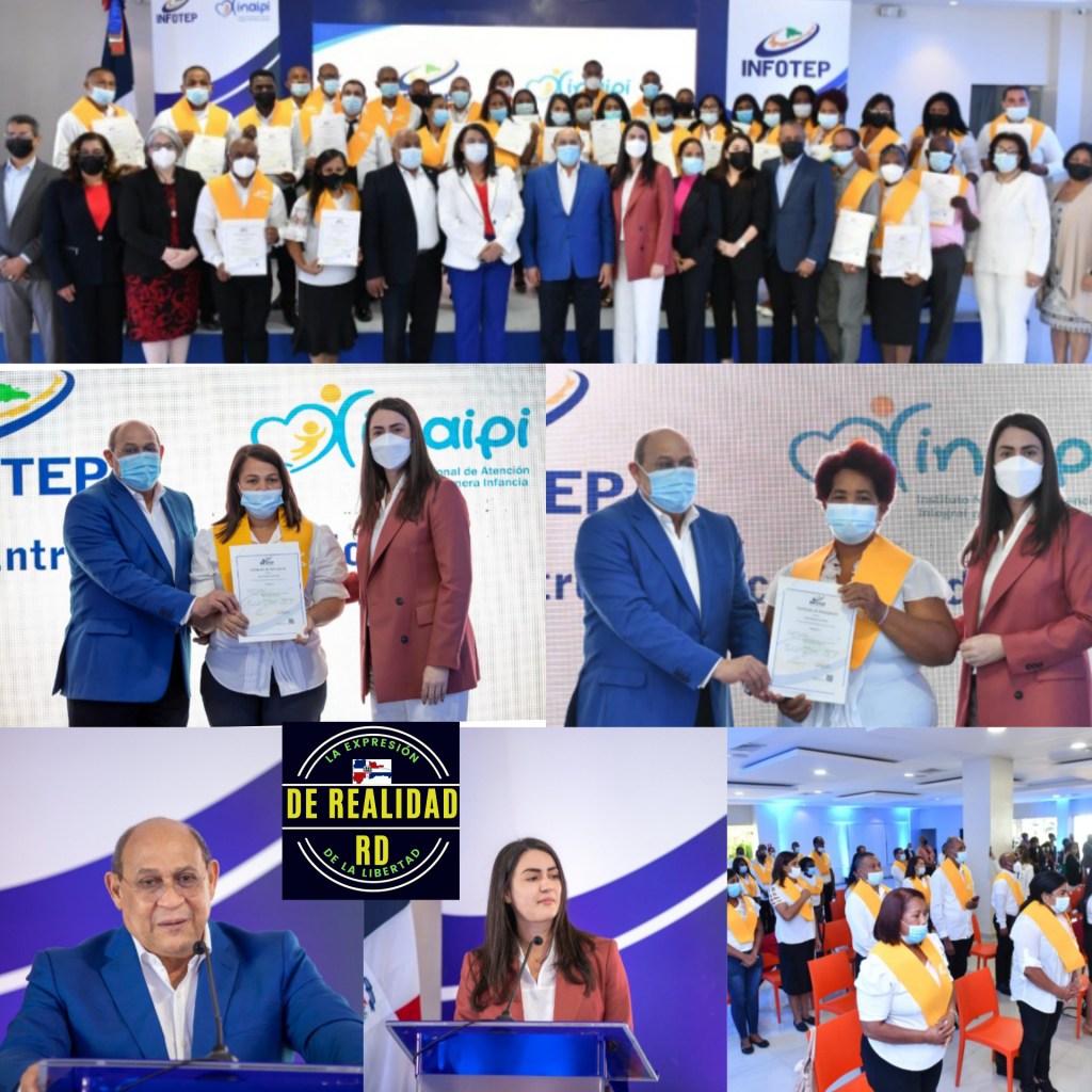 República Dominicana-(Santo Domingo) -El Instituto Nacional de Formación Técnico Profesional (INFOTEP), hizo entrega de los certificados que avalan la capacitación como “Técnicos en Cuidados para el Desarrollo Integral de Niños y Niñas de la Primera Infancia”, a 345 colaboradores que prestan sus servicios en el Instituto Nacional de Atención a la Primera Infancia (Inaipi), en el marco del acuerdo de colaboración interinstitucional firmado entre ambas partes.