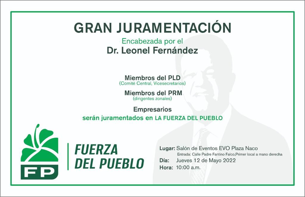 Leonado Grisanty Mañana 10AM, junto a 217 compañeras y compañeros, de RD y de Estados Unidos (en línea), miembros del PRM y empresarios, seré juramentado en el Partido La Fuerza del Pueblo (@FPcomunica) por @LeonelFernandez.