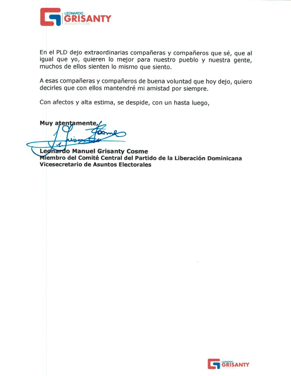 En el PLD dejo extraordinarias compañeras y compañeros que sé, que al igual que yo, quieren lo mejor para nuestro pueblo y nuestra gente, muchos de ellos sienten lo mismo que siento.