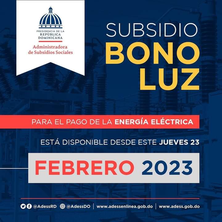 Adess Informa a los beneficiarios del subsidio a la energía eléctrica BonoLuz que pueden consumir desde este jueves 23 de febrero, en cualquier estafeta de su elección.