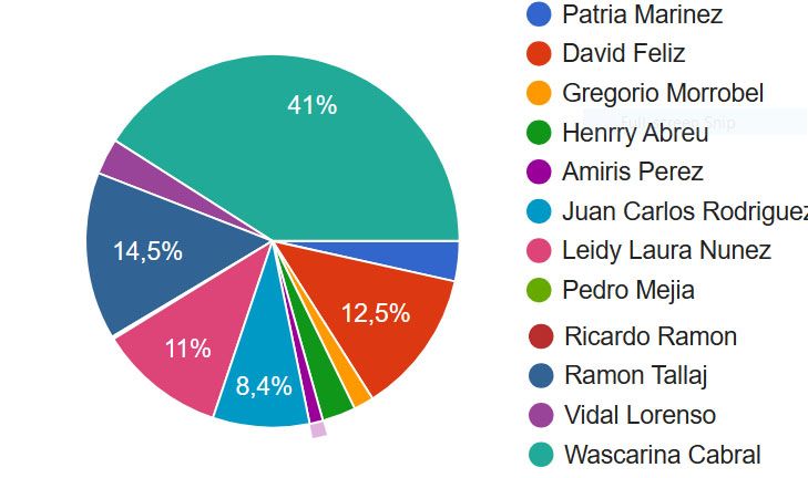 Aquí se puede observar que Wascarina Cabral es el candidato más popular con un 41% de los votos.