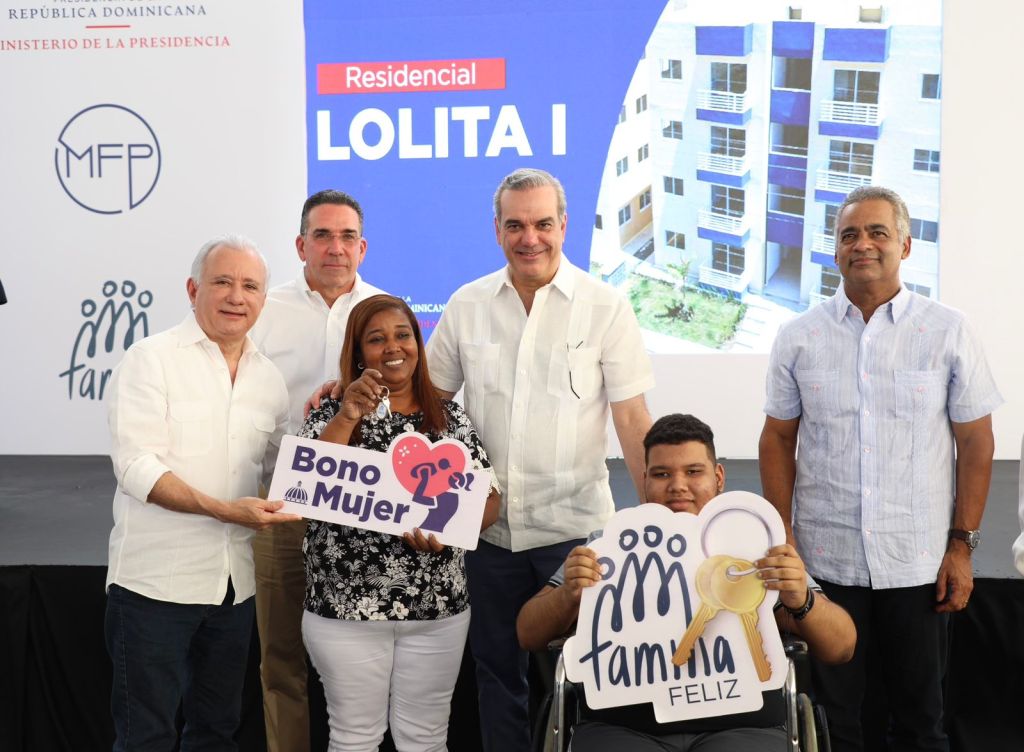El jefe de Estado, también encabezó la entrega de 168 nuevas viviendas de bajo costo y de carácter social que forman parte del Plan Nacional de Viviendas Familia Feliz y están ubicadas en el Residencial Lolita I, en Manoguayabo, Santo Domingo Oeste.