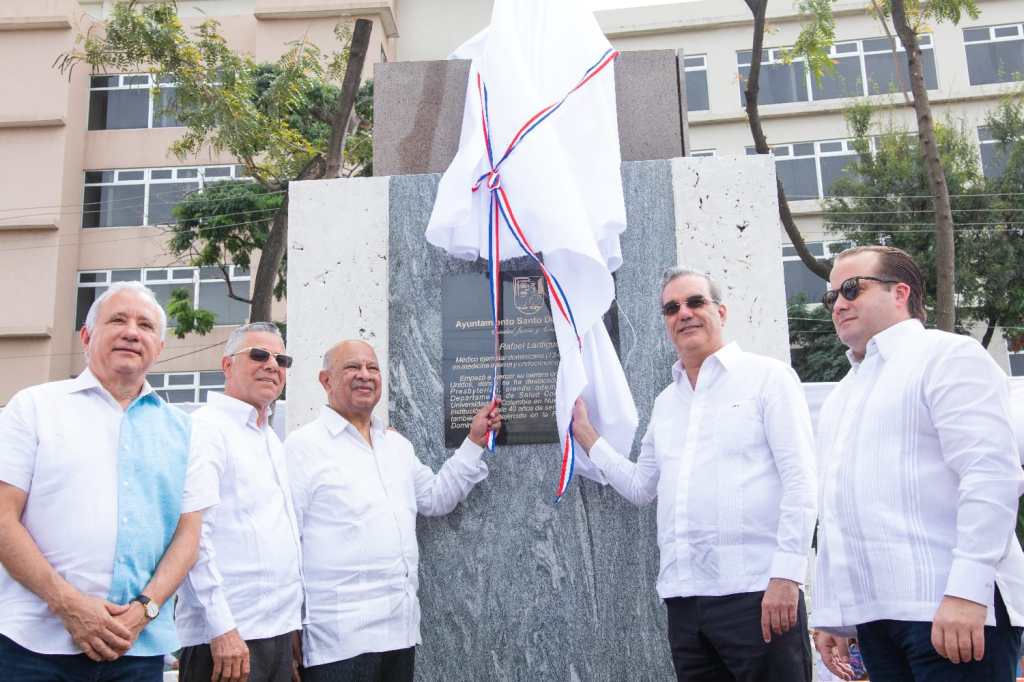 Presidente Abinader y alcalde Jiménez desvelizando un busto