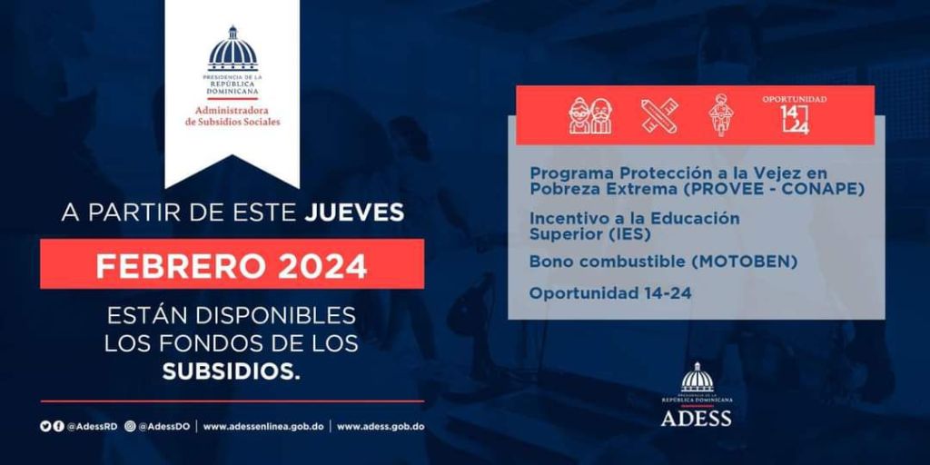 República Dominicana- AdessInforma a las personas beneficiarias del programa #Supérate, hábiles para consumir con tarjeta, correspondiente al mes de febrero, está disponible los fondos del programa.