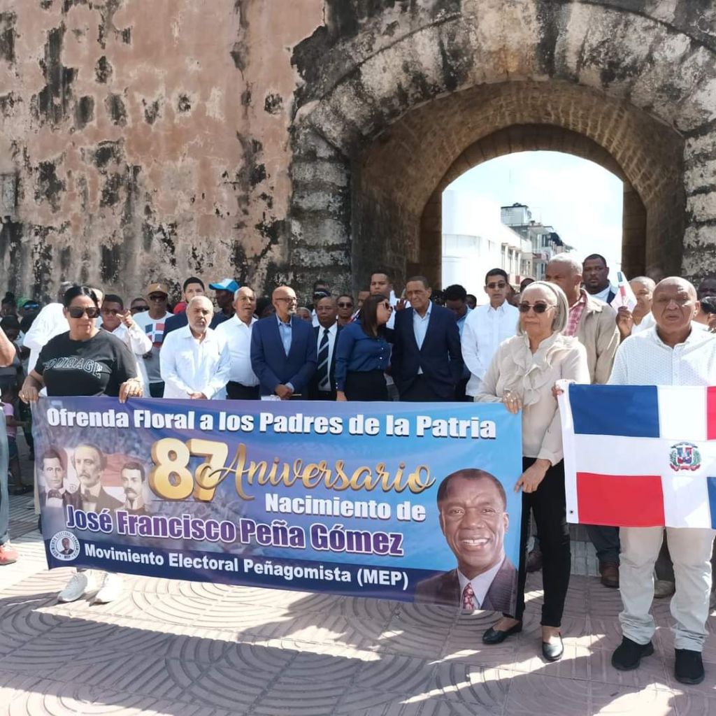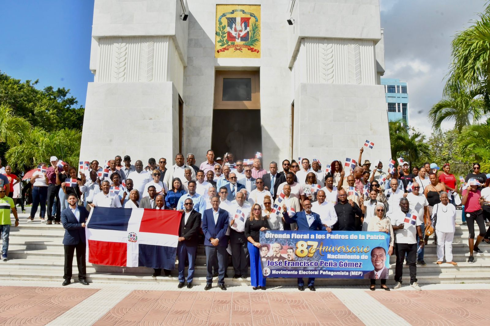 República Dominicana-(Santo Domingo)- Hoy El Movimiento Electoral Peñagomistas (MEP) dirigido por Rafael (Fiquito) Vásquez, ofreció en el día de hoy una ofrenda floral en el Altar de la Patria en conmemoración del octogésimo séptimo (87) aniversario del natalicio de José Francisco Peña Gómez, quien en vida fue un gran dirigente político, líder de masas y un referente de la historia política contemporánea del país, a quien además de un reconocido y vasto liderazgo político internacional a través de organizaciones como la Internacional Socialista, se le reconoce su ardua lucha por devolver la democracia y el respeto a la constitución del país en sus años de activismo político y presidente del otrora glorioso Partido Revolucionario Dominicano.
