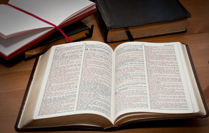 La Biblia o Sagradas Escrituras está divida en 2: El Antiguo Testamento, donde se relata desde la creación del mundo, el pecado y la caída del hombre y todo lo relacionado a la ley y el pueblo de Israel; y el Nuevo Testamento que narra todo lo ocurrido desde el nacimiento de Jesús, su vida, muerte y resurrección.