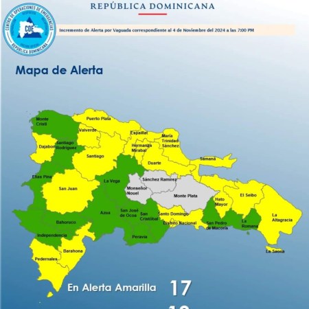 noviembre 4, 2024 DE REALIDAD RD π©π΄ COE Aumenta la provincia alerta Amarilla y Verde influencia indirecta Tormenta Tropical Rafael
