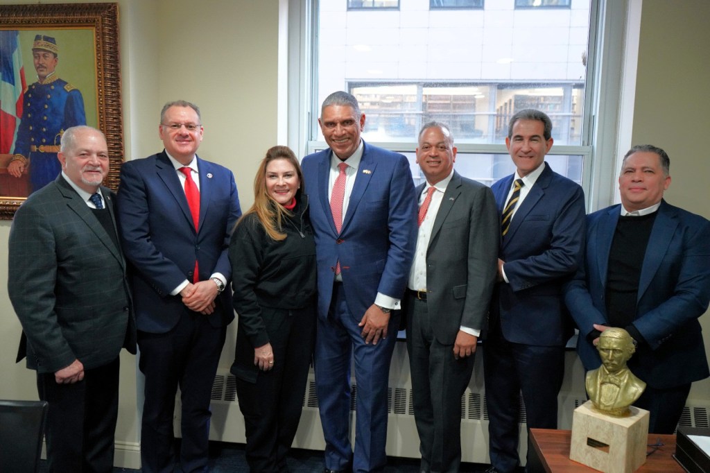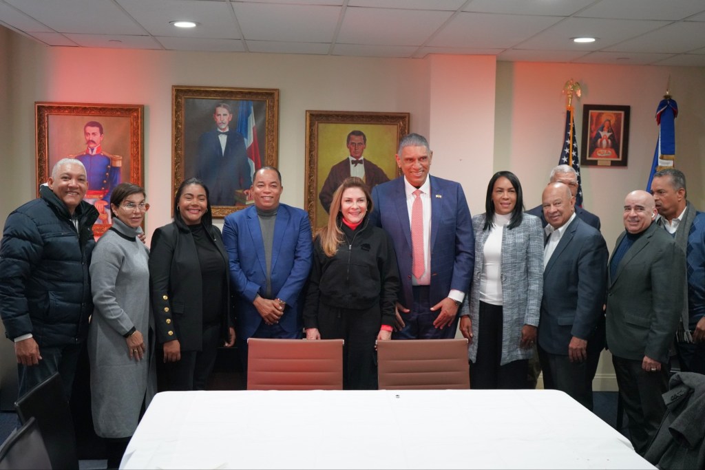 En el encuentro, la alcaldesa fue recibida por el cónsul Jesús Vásquez Martínez, junto a destacadas personalidades del ámbito político, empresarial y comunitario, entre ellos el congresista Adriano Espaillat, el embajador designado en Italia, doctor Rafael Lantigua, el empresario Rubén Luna, así como diputados y concejales de origen dominicano.