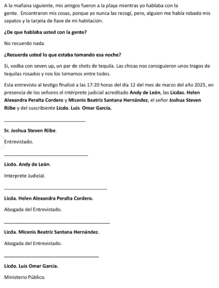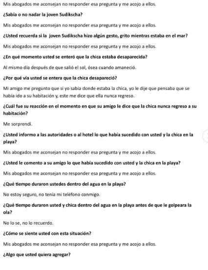 En total, Riibe respondió a 48 de las 56 preguntas formuladas, pero se negó a responder en 8 ocasiones, lo que ha generado inquietud sobre su posible involucramiento en los hechos.