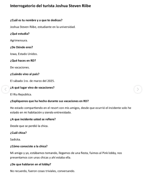 La joven, quien se encontraba de visita en Punta Cana como turista, desapareció en la madrugada del 6 de marzo, y la última persona conocida en haberla visto es Joshua Steve Riibe, un joven estadounidense de 24 años.