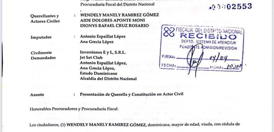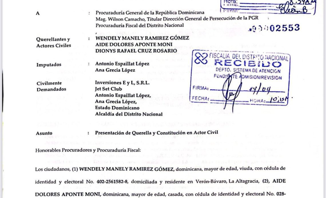 La demanda, que ha sido firmada por la viuda de Cruz Aponte, Wendely Maneli Ramírez, y los padres del occiso, Dionys Rafael Cruz, y Aide Dolores Aponte, alega que la tragedia, ocurrida el pasado martes 8, se debió a una combinación de negligencia estructural y fallas en la supervisión estatal. Se argumenta, además, que tanto los propietarios como las autoridades incumplieron con las normativas de construcción y seguridad, poniendo en riesgo la vida de los asistentes.