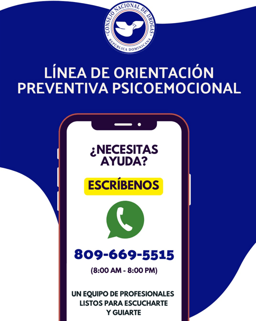 Republica Dominicana-(Santo Domingo)- El Consejo Nacional de Drogas (CND) anunció la puesta en marcha de un nuevo servicio de orientación y apoyo a través de WhatsApp, dirigido a personas que enfrentan situaciones de consumo problemático de sustancias psicoactivas, así como a sus familiares. La iniciativa forma parte del Operativo por la Vida con motivo de la Semana Santa 2025.