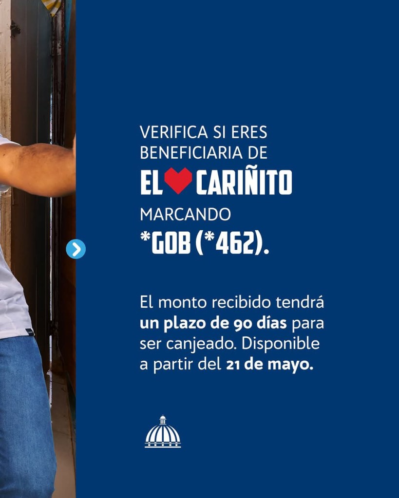 República Dominicana-(Santo Domingo)- A partir de este 21 de mayo, las madres beneficiarias del «Cariñito para Mamá 2025» pueden verificarse marcando GOB (462).