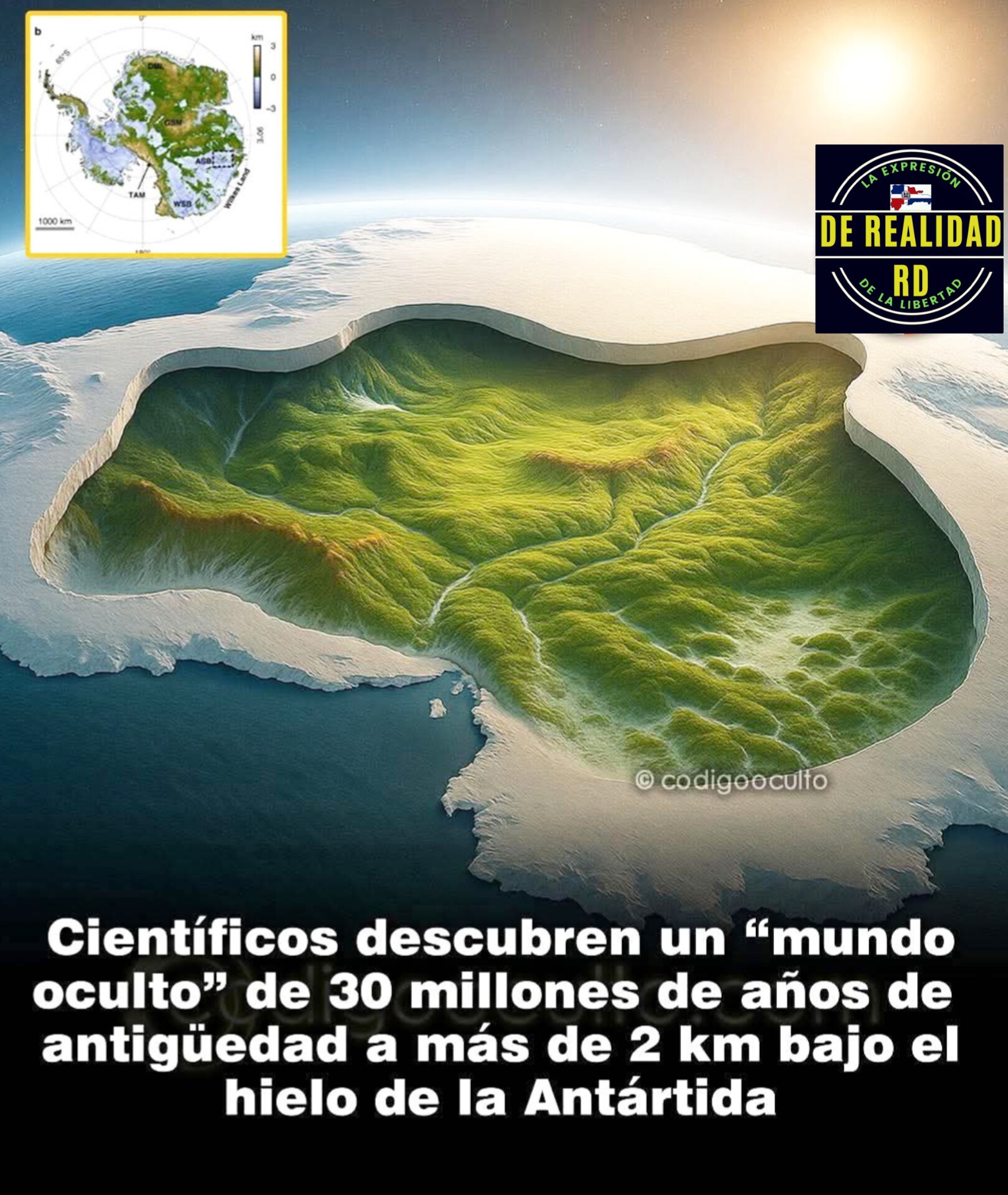 Esta topografía, ahora sepultada bajo casi dos kilómetros de hielo.—aproximadamente 2.200 metros de profundidad—, se conserva sorprendentemente intacta, como si el tiempo se hubiera detenido.