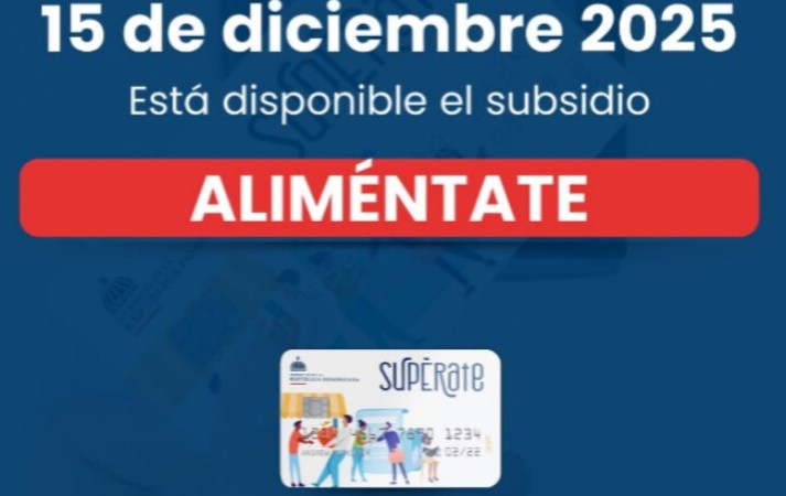 Republica Dominicana-(Santo Domingo)- El Gobierno dominicano, a través de la Dirección de Desarrollo Social Supérate, realizó este lunes 15 de diciembre el depósito del subsidio Aliméntate correspondiente al mes de diciembre por RD$1,650.00. Este deposito se suma al bono especial «La Brisita Supérate» de RD$1,500.00 que fue depositado el 4 de diciembre por motivo de la temporada navideña.