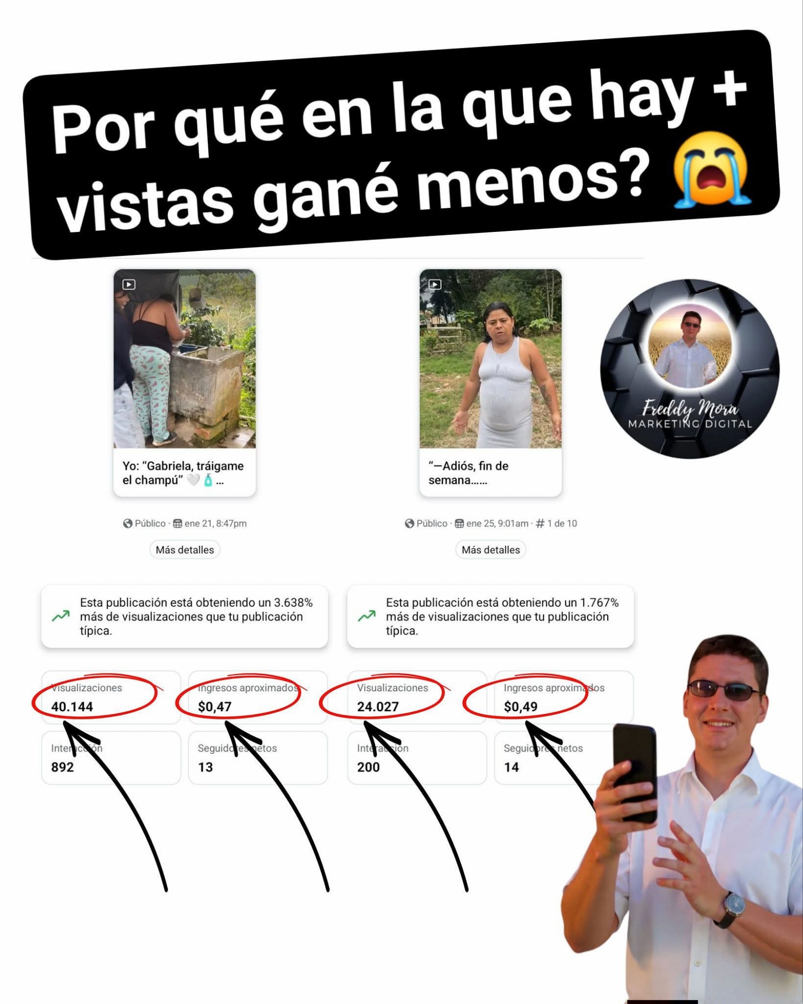Otro video con casi la MITAD de vistas (24,097) ganó $0.49 USD