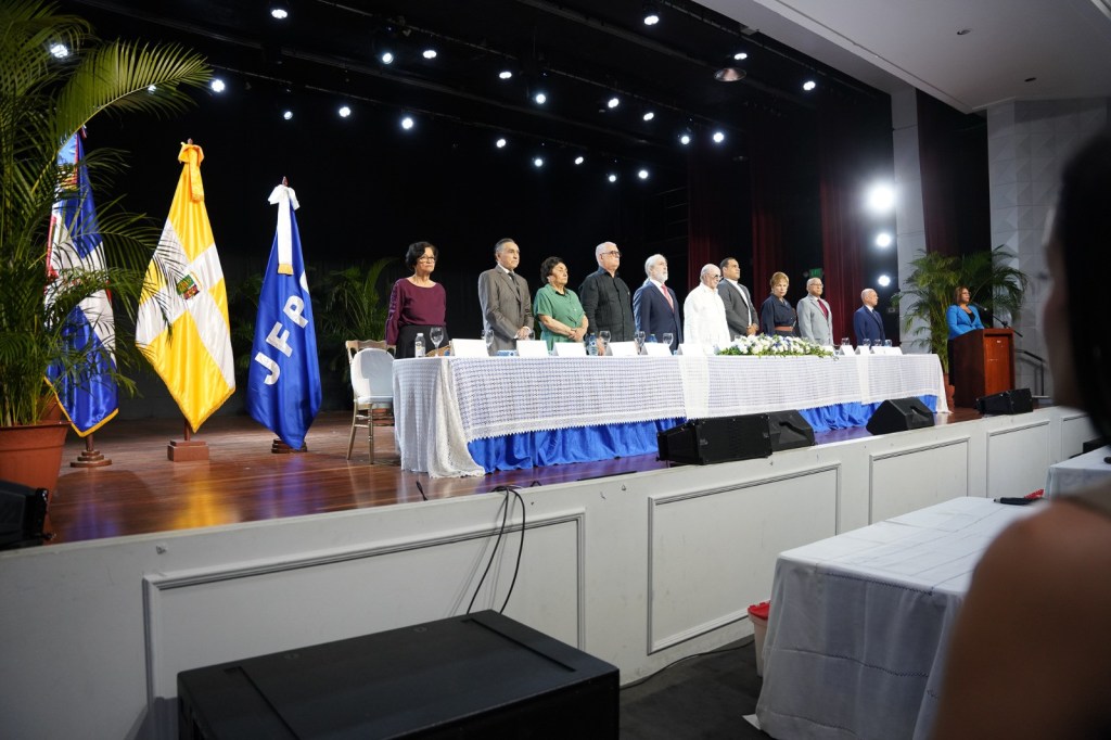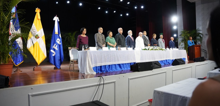 La mesa directiva fue encabezada por el presidente Hipólito Mejía, el Reverendo Padre José Luis de la Cruz, Rector Magnífico de la UCSD, el invitado internacional, doctor Juan Pablo Letelier, presidente de la Asociación Latinoamericana de los Derechos Humanos, ALDHU, y la alcaldesa del Distrito Nacional Carolina Mejía, así como por demás los demás directivos del IFPJFPG: Alma Cabral (Peggy), directora Ejecutiva, Darío de Jesús, presidente Ad-vitam, Pastora Méndez directora Administrativo, Rafael Montilla, gestor académico, Luisa Sánchez, gestora académica, entre otros.