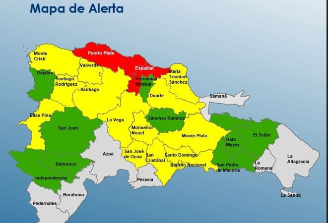 República Dominicana -(Santo Domingo)- El Centro de Operaciones de Emergencias, COE, elevó el nivel de alerta roja para Puerto Plata y Espaillat.