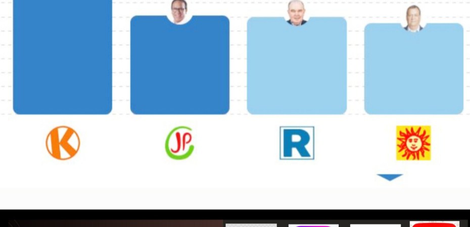 En cuarto puesto va Jorge Nieto Montesinos, de Partido Buen Gobierno, con 11.0%; le siguen Ricardo Belmont, del Partido Cívico Obras, con 10.1; Carlos Álvarez, de Partido País para Todos, con 7.8; Pablo López, de Ahora Nación, con 7.3; María Pérez de Primero La Gente, con 3.4, entre otros.