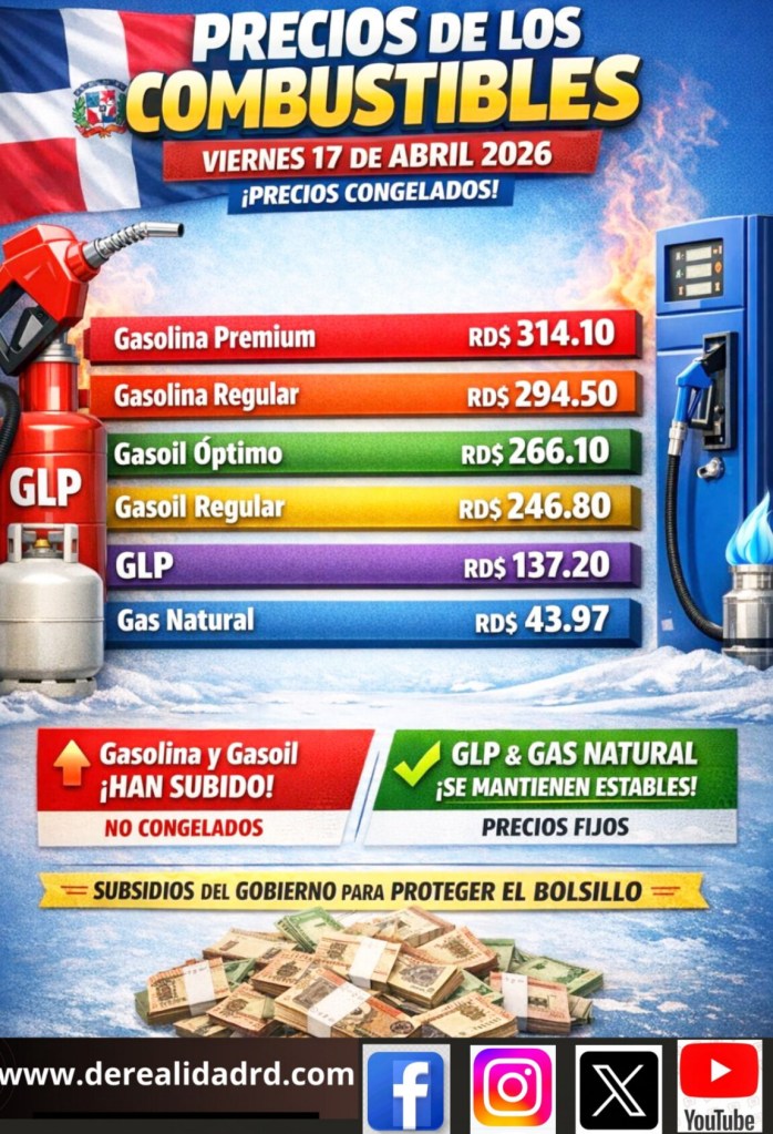 República Dominicana-(Santo Domingo)- Ante la escalada de los precios internacionales del petróleo y sus derivados, el Ministerio de Industria, Comercio y Mipymes (MICM) informó que el Gobierno dominicano asumirá el 100% de las alzas en el mercado local, destinando RD$ 1,153.8 millones para subsidiar los combustibles durante la semana del 18 al 24 de abril de 2026.